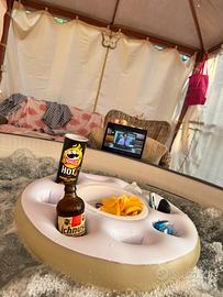 La pompa ha la funzione di gonfiaggio della spa e le sue classiche funzioni di idromassaggio, riscaldamento acqua fino a 40C e ricircolo acqua con pulizia filtro. Con la spa regalo tappetini di gomma sottovasca, luce multicolor e gonfiabile per aperitivi.