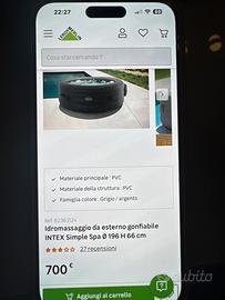 Vendo jacuzzi intex simple spa bubble massage per inutilizzo. Comprata ad agosto, ancora in garanzia,