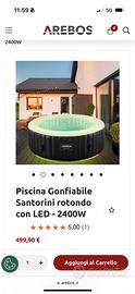 Vendo per inutilizzo jacuzzi gonfiabile come da foto. Usata una volta e poi messa nella sua scatola originale con tutto l’occorrente.