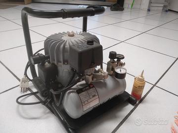 Compressore silenzioso 220 V. JUN-AIR mod. 3-1.5 con serbatoio 1,5 litri completo di manometro - riduttore pressione e rubinetto (il tubo blu a spirale nella foto me lo tengo io).