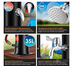 KESSER® Doccia solare da giardino Doccia solare curva incl. fodera protettiva acqua calda I 60°C max senza collegamento elettrico | Doccia per piscina e campeggio I 35 litri.