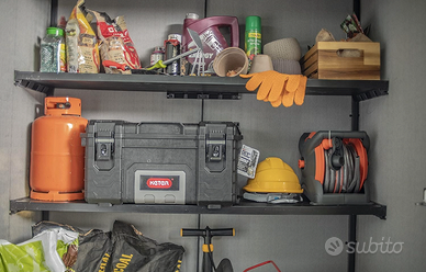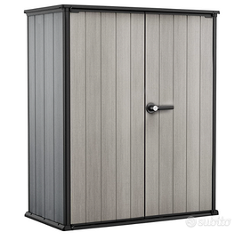 Dotato di struttura con pareti a doppio strato, cerniere in metallo con apertura a 110°, sistema di chiusura lucchettabile, supporti per mensole e pavimento incluso.