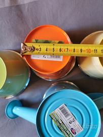 Kit 3 vasetti + mini innaffiatoio in ferro smaltato ottime condizioni misure come da foto. 4 Euro
