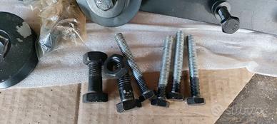 4 ruote per porta scorrevole, mai utilizzate. Con 2 staffe e viteria: bulloni, dadi etc,,