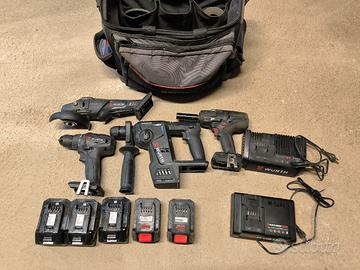 vendo kit attrezzi wurth usati una sola volta tassellatore avvitatore Flex e avvitatore a impulsi con 4 batterie da 5 ampere e 1 da 4 ampere 2 caricatori completo di borsone wurth