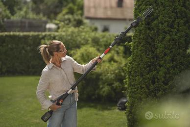 È inclusa un'asta complementare con albero telescopico per aumentare il raggio d'azione fino a 3 metri e offrire una posizione di lavoro ergonomica. Per ridurre al minimo lo spazio di stoccaggio, la cesoia per arbusti è compatibile con la soluzione Aspire™ Storage ed è dotata di un gancio su misura per essere riposta comodamente a parete.