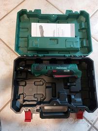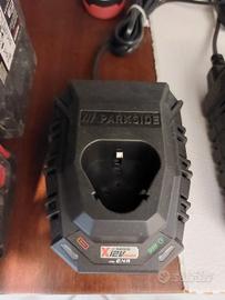 Kit composto da un trapano avvitatore 12V, un avvitatore a cricchetto 12V attacco 3/8", una batteria da 2Ah ed una da 4Ah, un caricabatterie ed un set di inserti (solo quest'ultimo usato, il restante è tutto nuovo)