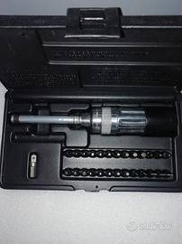 Vendo kit chiave dinamometrica Sturtevant Richmont con inserti 29 pz cod.810568 Chiave dinamometrica cal 36/4k , range da 0,2 Nm a 4 Nm, scala 0,2Nm attacco 1/4 F Hex n.5 pz inserti hex.: 5/64,3/32,7/64,1/8,9/64 n.2 pz inserti taglio: posidriv # 1,posidriv # 2 n.4 pz inserti croce: phillips #0,#1,#2,#3 n.6 pz inserti torx: T10,T15,T20,T25,T30,T40 n.5 pz inserti scan: 0-1 3-4, 5-6, 8-10, 12-14 n.4 pz inserti quadro: 0, 1 ,2 ,3. n.1 adattatore x dadi 1/4" n.1 portainserti 1/4" Spedizione tracciata in tutta Italia o consegna a mano Contattatami per qualsiasi info