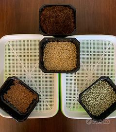 🤩Kit per autoproduzione micro ortaggi!🌿 I micro ortaggi sono considerati la coltivazione del futuro, crescono rapidamente, sono ricchissimi di vitamine e sali minerali e non richiedono nessun tipo di fertilizzante!💚 🦋Perché allora non provare ad aggiungerli già da oggi alla propria dieta? Ho creato un kit completo che contiene: 2 vassoi di coltivazione riutilizzabili Substrato pronto in fibra di cocco 3 varietà di semi certificati, per 2/3 coltivazioni per tipo Un manuale pratico scritto da me per la coltivazione passo dopo passo I semi che troverete saranno: 🫛Piselli, da aggiungere a frullati o insalate per un pieno di proteine Ravanelli, stanno bene un po’ di tutto e sono un integratore naturale di vitamina C 🌿Erba d’Orzo, per estratti freschi, é energia pura essendo ricchissima di clorofilla, vitamine e minerali