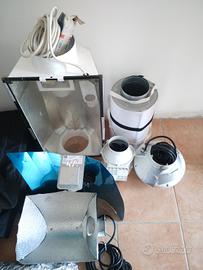 Kit coltura idroponica composta da tenda,sostegni,estrattore, ventilatore,filtro,lampada, specchio riflettente,alimentatori, tubazioni.
