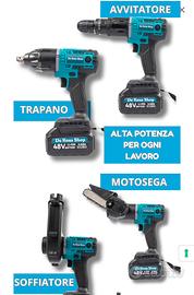 Informazioni su questo articolo KIT 5 IN 1 CON TESTE INTERCAMBIABILI Un solo corpo macchina, cinque strumenti in uno: trapano, avvitatore a impulsi, mini motosega, soffiatore, aspiratore e valigetta. Passaggio rapido e semplice tra le teste per la massima versatilità nei tuoi lavori. 2 BATTERIE 48V 3AH CON DISPLAY DIGITALE Dotate di tecnologia al litio e schermo digitale per il controllo dell’autonomia in tempo reale. Lunga durata, alta potenza e zero sorprese durante l’utilizzo. POTENZA E PRESTAZIONI PROFESSIONALI Il motore ad alte prestazioni garantisce forature precise, avvitamenti rapidi e tagli netti. Ideale per uso domestico, bricolage, manutenzione e piccoli lavori professionali. MINI MOTOSEGA E SOFFIATORE COMPATTI Perfetti per il giardinaggio e la cura degli spazi esterni. Taglia rami, pota piante e pulisci facilmente foglie o segatura, senza fatica e con il massimo controllo. VALIGETTA OMAGGIO PER TRASPORTO E ORGANIZZAZIONE Inclusa una valigetta rigida per riporre e trasportare il kit in totale sicurezza. Tutto in ordine, sempre a portata di mano, ovunque tu vada. USO MULTIFUNZIONE PER CASA, GARAGE E GIARDINO Progettato per soddisfare tutte le esigenze: dal montaggio mobili alle riparazioni domestiche, dalla potatura alla pulizia del giardino. Un solo kit, infinite possibilità.