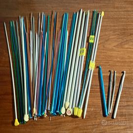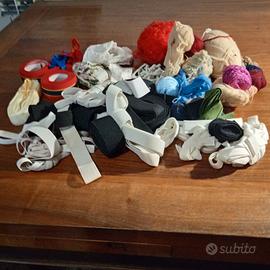 Accessori per cucire bottoni, forbici, ditali, nastri, ferri per maglia, uncinetti, macchina x cucire a pile, mini macchina da cucire, rocchetti fili e cestino porta lavoro ecc..