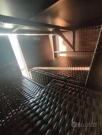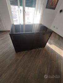 kit da giardino formato da tavolo con lastra vetro temperato fumé 120*70 e 4 sedie con cuscini .