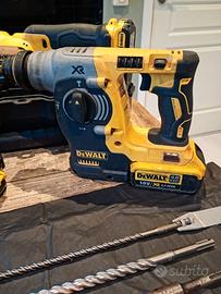 Kit di tre attrezzi Dewalt composto da : - 1 trapano a percussione (DCH273) - 1 smerigliatrice angolare DeWalt (DCG412) - 1 trapano (DCHD730) - 2 batterie da 1,5 amp - 14,4 V. - 1 batteria da 2,0 amp - 18 V. - 1 batteria da 4,0 amp - 18 V. - Caricabatterie DeWalt - Custodie incluse - 4 punte per cemento (8-10-12 mm)