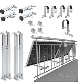 KIT composto da pannello solare monocristallini bifacciali 485wp,inverter con misuratore da inserire a valle del contatore Enel,kit staffe ( specificare la tipologiandi balcone),cavi collegamento 10mt.Non necessita di autorizzazioni condominiali.