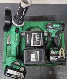 Splendido Kit Hikoki che comprende Smerigliatrice a Batteria Mod. G1813DA e Avvitatore a Impulsi Mod. WH18DC Entrambi Con motore Brushless e con 3 Batterie da 18v 5ah. I corpi macchina e le batterie sono In ottimo stato ed efficienti al 100%!!