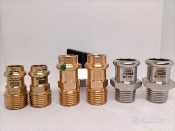 Kit idraulica Rubinetto Caldaia e 6 Raccordi in Bronzo Rame e Acciaio inox 12 mm 15 mm 18 mm.