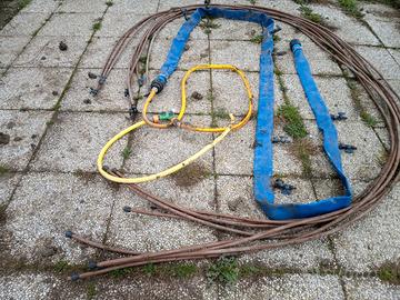 Causa vendita terreno, vendo tubo gocciolante per irrigazione orto, giardino, ecc. di ottima qualità, usato di un anno e funzionante al momento della dismissione. Lunghezza di 8 tubi a goccia 7 mt circa e lunghezza tubo azzurro di trasporto acqua 6 mt circa. Euro 15.