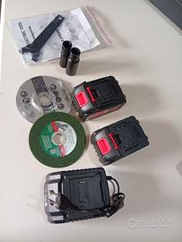Space Easy, Kit lavoro combo 4 in 1 . Tutti gli utensili hanno il motore Brushless di altissima qualità. Il kit include all interno della sua valigetta. 1) Tassellatore demolitore martello pneumatico a batteria di altissima qualità con motore Brushless. 2) Smerigliatrice angolare motore Brushless max diametro 125mm , con inclusi paraschegge, manubrio, chiave smontaggio disco. 3 ) Trapano avvitatore motore Brushless, potenza di 120 nm di altissima qualità. 4 ) Chiave ad impulsi 350 nm motore Brushless alta qualità. Vengono fornite 2 batterie al litio da 8000 mha 10 amper + 1 caricabatterie a centralina di ricarica a ricarica rapida. Peso della valigetta 9.5 kg . N.B. Tutti e 4 i prodotti hanno il motore Brushless di altissima affidabilità, longevità e qualità. Include accessori: 2 boccole per la chiave ad impulsi n. 21 e n. 17. + 2 dischi per la smerigliatrice angolare. non hanno motore a spazzola. Garanzia 1 anno sul motore. Qualità eccellente.