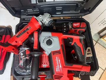 Kit milwaukee composto da tassellatore, smerigliatrice, trapano avvitatore , caricatore 2 batterie 4 Ah M18 e borsa in tessuto tutto nuovo in vonf. Originale