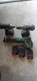 kit parkside compreso di avvitatore impulsi piu gattuccio +avvitatore tre batterie da 2ah e una da 4 ah piu due carica batteria non presenti in foto