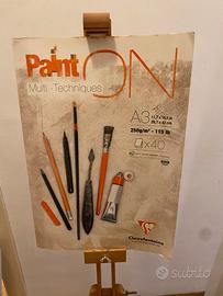 - Cavalletto “3 piedi” in legno Mabef - Album A3 multi techniques con fogli 250g/per m quadrato - confezioni colori Pebeo stiduo acrylics high viscosity con 30 tubi da 20 ml + 2 tubi da 100 ml