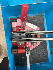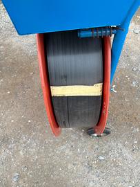 Kit per la reggiatura manuale, carrello porta bobina completo con vasca, pretensionatore regolabie e bobbina di reggia nuova. Reggiatrice manuale mod. RO.MA MPL 16.