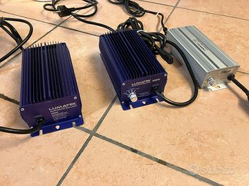 Alimentatori per lampade al sodio HPS adatte per potenze 250, 400, 600 Watt. Una plafoniera portalampada Adjust-wings. Tutto in perfette condizioni e precablato. Prezzo trattabile. Vendo anche singolarmente.