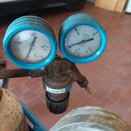 Valuto offerte per Kit per saldatura ossiacetilenica con cannello completo come da foto. Bombole piene da 5 litri cad. ma prive di libretto. Tubo in gomma vecchio da sostituire. Visione e ritiro qui in loco. Non spedisco. Solo messaggi.