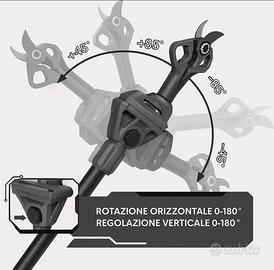 Caratteristiche: Potenza del motore: 400W BatteriE a Litio Barra da 6 Pollici (circa 15 cm) Catena a 36 Maglie per un taglio preciso e Rapido Velocità dei giri: 5M/S Massima lunghezza del taglio: 15 cm Doppio pulsante con protezione Barra Manuale (con chiave in dotazione) Caratteristiche asta: Asta Robusta e solida Diametro del tubo in metallo da 3,3 cm Presa Ergonomica dotata di antiscivolo Morsetti per il blocco regolabili 2 Tubolari regolabili Allungabile da 107 cm a 230 cm (Fino alla fine) Regolazione dell'angolo da 5° a 175° per la parte in cima Contenuto della confezione: 1 x Forbice da potatura a batteria 1 x Motosega portatile 2 x Batterie al litio 48v 1 x lampada led 1 x Caricabatterie 1 x Asta telescopica 1 x Manuale