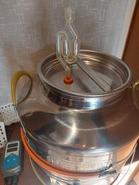 Fermentatore da 30 LT in acciaio inox con rubinetto e gorgogliatore, fascia riscaldante con termometro e termostato (mantiene in automatico la temperatura desiderata), miscelatore, e kit densimetro.