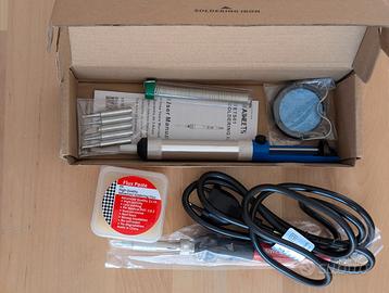 Vendo kit saldatore professionale con cavo elettrico a matita, dotato di interruttore indipendente e temperatura regolabile da 200°C a 450°C.