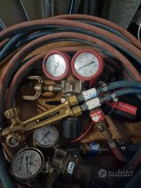 per saldatura ossigeno acetilene, kit in buone condizioni comprensivo di valvole ritegno di sicurezza