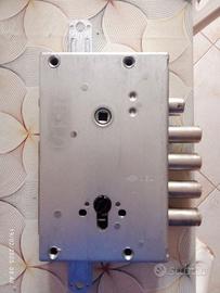 Serratura Iseo con scrocco in alto quattro chiavistelli più due verticali compatibile con cilindro europeo