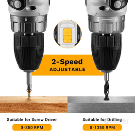 [trapano elettrico da 20V] Questo trapano avvitatore a batteria senza fili ha due velocità regolabili (0 - 350 / 0 - 1350 rpm) e 18 + 1 impostazioni di coppia.