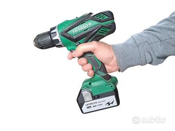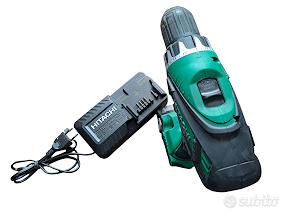 Kit trapano avvitatore Hitachi con caricabatterie e batteria.