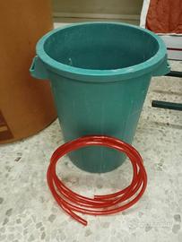 Vendo per cessato utilizzo questo bel kit per viticoltori in ottime condizioni composto da: - grande botte in vetroresina con coperchio e rubinetto già installato, ottime condizioni ferma da qualche mese. - bidone da 70 litri per uva in ottime condizioni ottima qualità, fermo da qualche mese. - diraspatrice manuale color panna e verde, buone condizioni, presente qualche formazione di ruggine all' esterno, fermo da molti mesi. - 24 bottiglie in vetro verdi scure, nuove. - 200 tappi nuovi in 2 confezioni sigillate. - Tubo in plastica nuovo, lunghezza 4,5 metri. - contenitore rosso per raccolta uva, ottime condizioni.