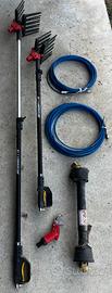 Vendo per scarso utilizzo il Kit professionale raccolta e potatura Olive Zanon T- 556. Dotato di cardano, il Kit Tractor 556 comprende 2 abbacchiatori pneumatici mod. Mambo Speed Light, 2 tubi di collegamento da 20 Mt. completi di raccordi rapidi, 2 aste telescopiche in alluminio mod. AL 200, 1 compressore mod. Super Star T 556, una forbice mod. Viper pneumatica collegabile all'asta. CARATTERISTICHE TECNICHE - ABBACCHIATORE PENEUMATICO MAMBO SPEED LIGHT - Aria aspirata: 200 Lt./min. - Pressione: 6-8 Bar - Peso: 250 gr. - Lunghezza portadenti: 24,5 cm - Bacchette: 11 + 11 - ASTA TELESCOPICA AL 200 - Lunghezza asta: 120 - 200 cm - Peso: 1 kg - COMPRESSORE SUPER STAR T556 - Aria aspirata: 555 Lt./min. - Cavalli: 15 hp - Forbici: n 4-6 - Peso: 85 kg - Pressione: 9-11 bar - Seghetti: n-/1 - Serbatorio: 14+10 Lt - Sferzatori: n1-2 - Trasmissione con presa di forza a trattore - 540 giri - FORBICE VIPER - Peso: 200 gr. CONTENUTO DEL KIT - 2 abbacchiatori pneumatici mod. Mambo Speed Light - 2 tubi di collegamento da 20 mt. completi di raccordi rapidi - 2 aste telescopiche in alluminio mod. AL 200 - 1 compressore mod. Super Star T556 - 1 cardano - 1 forbice mod. Viper