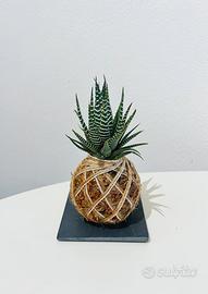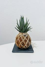 Kokedama con Haworthia Fasciata – Pianta grassa + base in ardesia inclusa