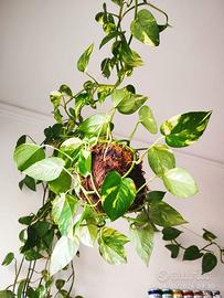 Kokedama con pothos golden. Ha più di un anno quindi ben radicato e in crescita. Pianta senza vaso adatta ad essere appesa.