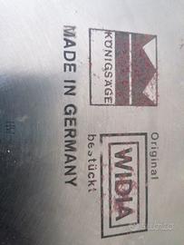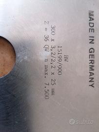 Numero 2 lame Widia vintage per macchina combinata da falegnameria. Diametro cm 30, spessore lama 3,2 mm, foro centrale 2,5 cm, 36 denti. Sono ancora nell'incarto originale. Vintage. Il prezzo inserito è per entrambe le lame, il totale