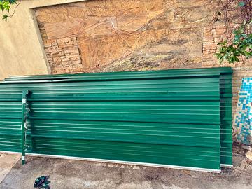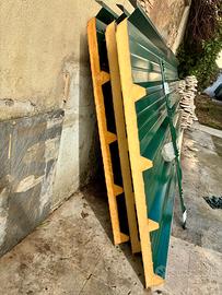Tre lamiere grecate nuove, coibentate, inclusi tre frontalini e relativi cappellotti per fissarle.