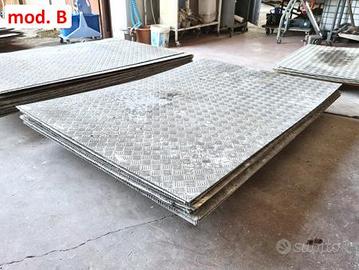 lamiere di alluminio antiscivolo usate, si tratta di un totale di 55 fogli di alluminio mandorlato per pavimentazioni in cui è richiesta maggior resistenza allo scivolamento, per zone interne ed esterne di: industrie, laboratori alimentari, magazzini, etc.