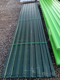 lamiere grecate 6/10 in stock appena prodotte vendesi. Colori e quantità disponibili: verde foresta disponibili 37 da 4m e 28 da 2.5m ; verde lime 50 da 4m ; grigie 26 da 2.5m 6€ al mq e 5.50 se si superano.i 50mq.