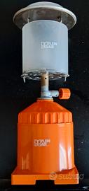 Lampada portatile da campeggio marchio Plein Air con scatola degli anni 70. La cartuccia a gas si inserisce nella base e la manopola regola l'intensità della luce. Qualche naturale segno del tempo che passa ma ancora in grado di fare il suo dovere. Cartuccia da sostituire
