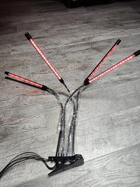 Vendo per inutilizzo luce a led per crescita piante,sono presenti 4 braccia con 4 lampade led a luci rosse e blu combinabili e programmabili,sia col filo che con il telecomando,inoltre si può impostare un timer a 4/8/12 ore,oltre all'intensità e al colore delle luci(rosse,blu o entrambi). Alla base si trova una pinza per fissarla ai vasi o dove necessario. Alimentazione tramite usb con alimentatore incluso.