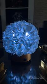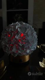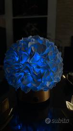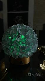 Lampada piccola di sfera,fatta con materiali ecologici, cambia colori dal piccolo telecomando. Dimensioni 14/15 cm