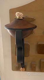 Lampada applique a parete da esterno struttura in ferro verniciato nero e ampolla in rame per combustibile a olio/citronella