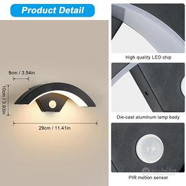 Lampada da esterno DELIPOP, applique da esterno con sensore di movimento, applique da 24W, applique da esterno per interni, LED bianco caldo 3000K, luce da esterno IP65, LED per giardino, balcone, ingresso, vialetto, nero