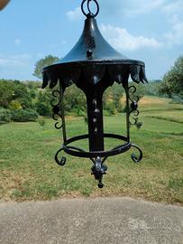 Lampada nera da esterno da soffitto stile medievale. Dimensioni: 60x25 cm.